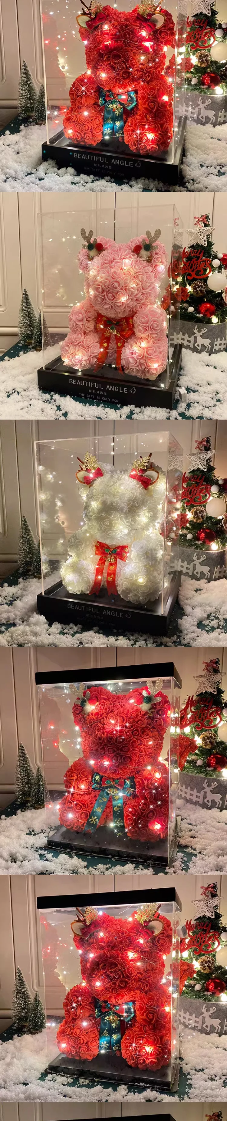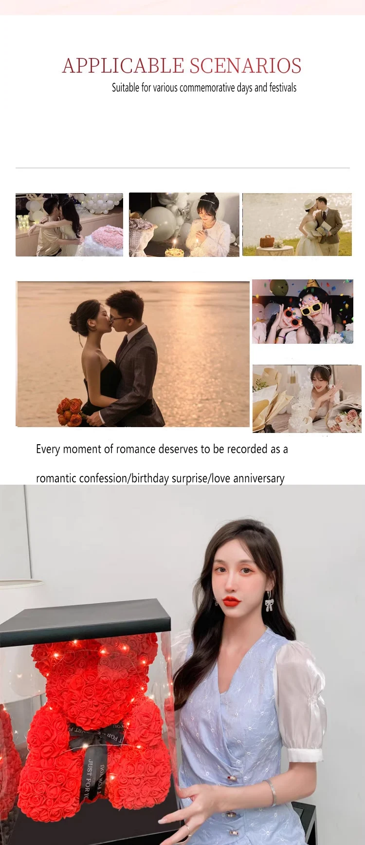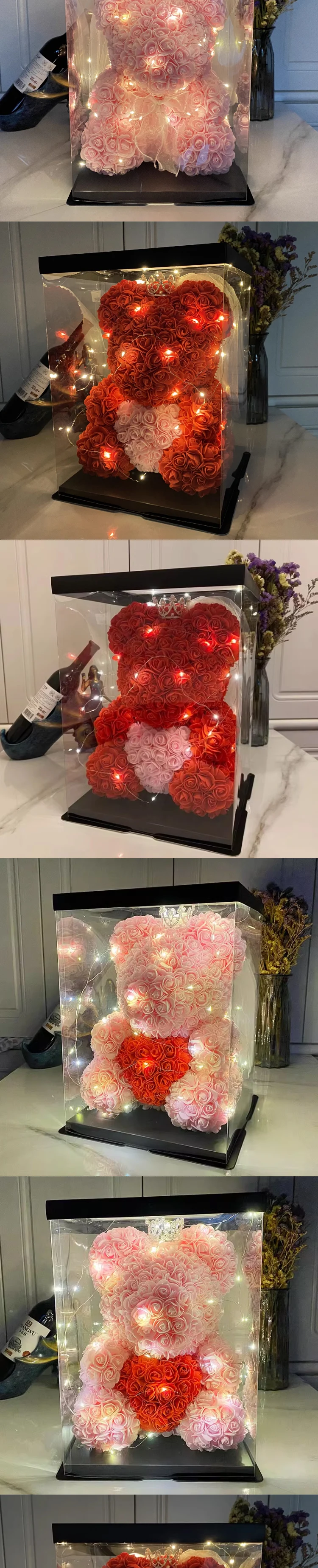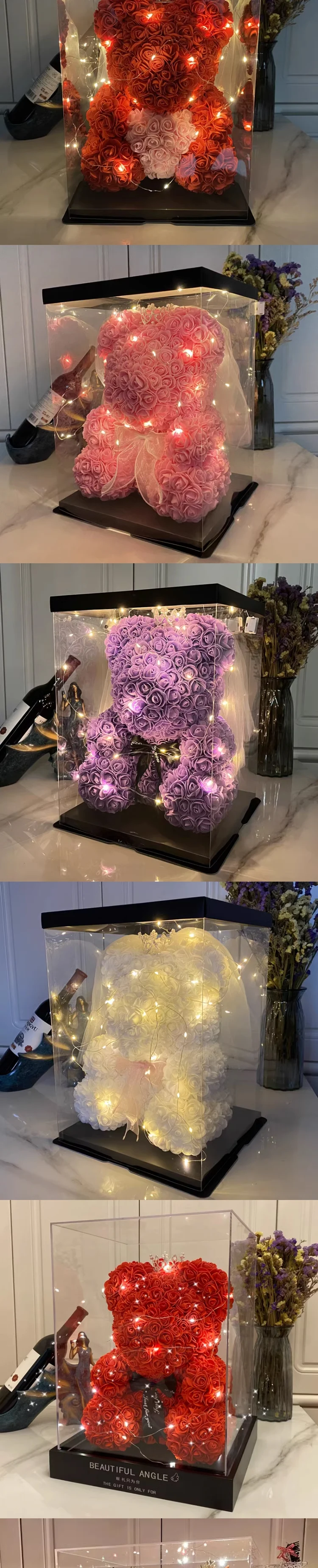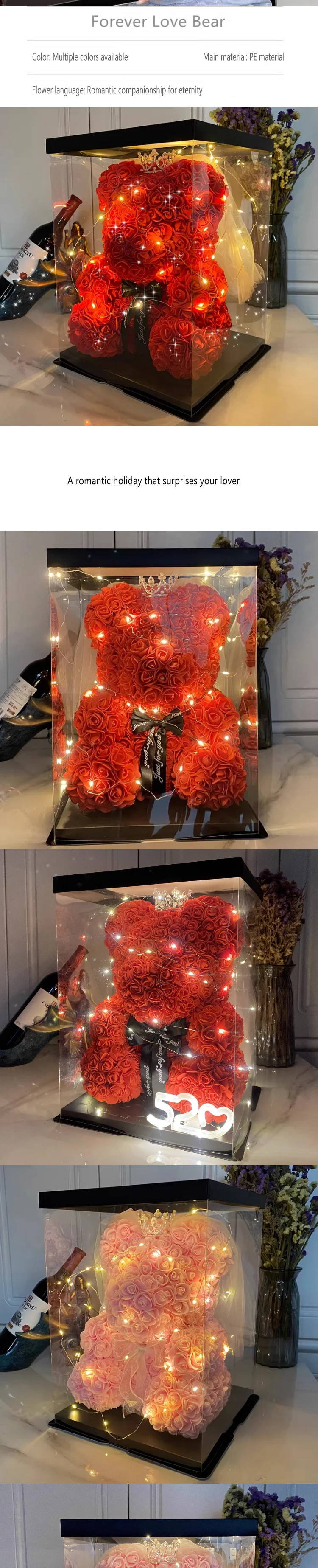40/25cm Rose Teddy Bear with Box Artificial PE Flower Bear Rose Valentine's Day for Girlfriend Women Wife Mother's Day Gifts