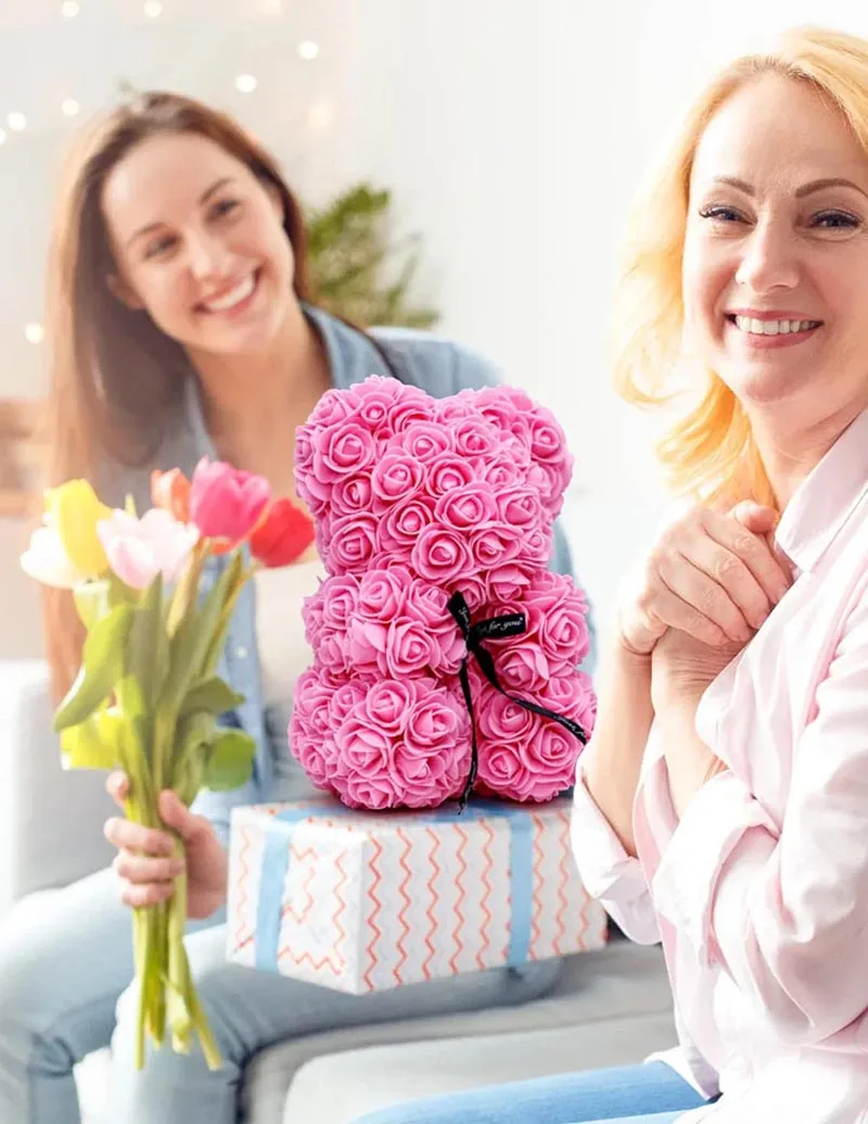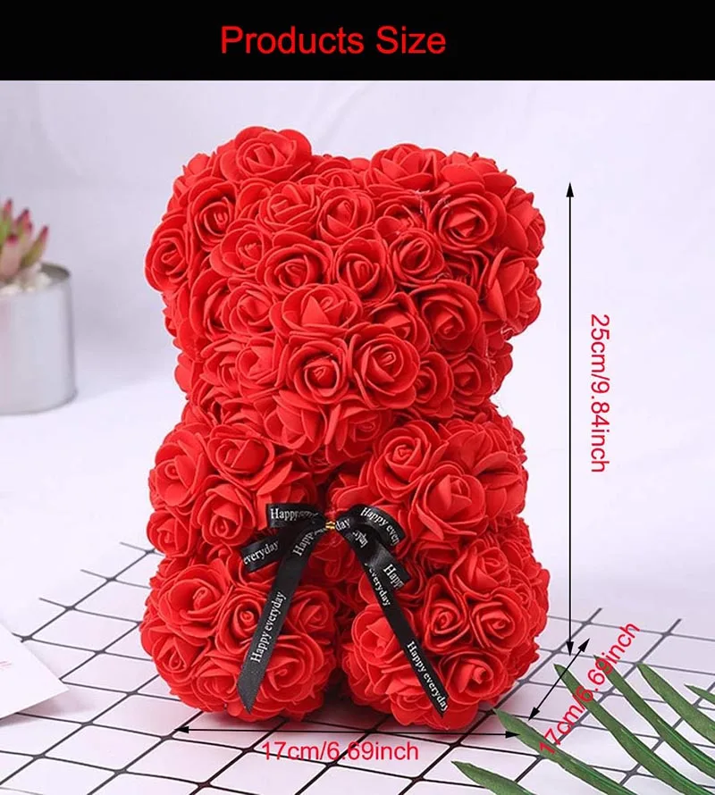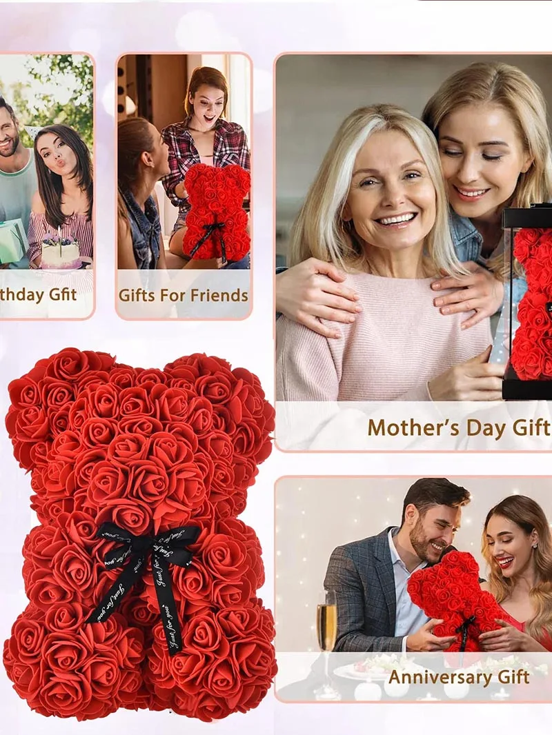 Artificial Rose Bear Red Pink PE Flower Rose Bear for Mom Mother'S Day Wedding Valentine'S Day Anniversary Gifts & Decorations